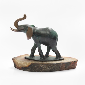 (Mediados S. XX) "Elefante" Bronce patinado y dorado / Base de ágata 18 x 20 x 9 cm.