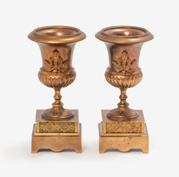 Pareja de copas en bronce con decoración de perlas, gallones, decoración vegetal y geométrica. Estilo Luis XVI.
