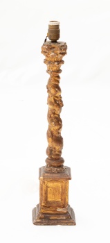 Columna en madera tallada y dorada con decoración de flores y capitel. Época Luis XVI.