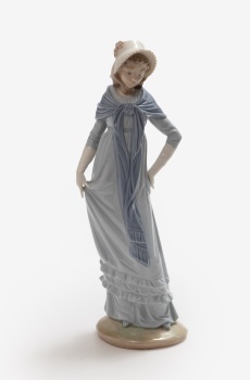 Figura en porcelana policromada representando joven con sombrero. Sello en la base. Manufactura Lladró. Nao.