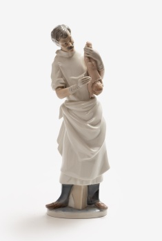 Figura en porcelana policromada representando médico con bebe. Sello en la base. Manufactura Lladró.