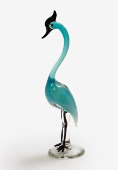 Figura en cristal de Murano color verde y azul representando ave sobre una ola.