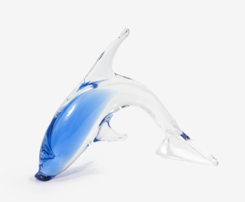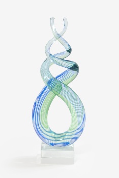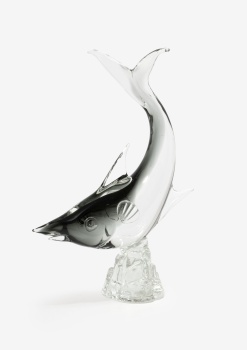 Figura en cristal de Murano en color blanco, azul y verde representando barracuda.