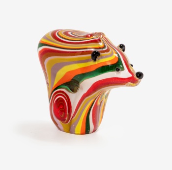 Figura en cristal de Murano en rojo, amarillo, naranja, etc. representando oso. Placa y firmado en la base. Cber.