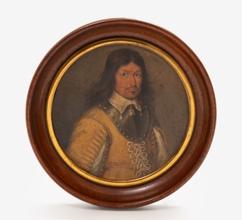 Miniatura pintada representando caballero de época con marco en madera tallada.