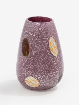 Jarrón en cristal blanco opaco con decoración de ramo de flores en cristal de colores .