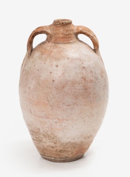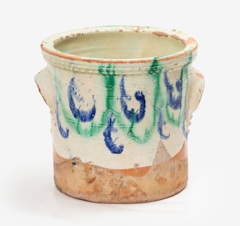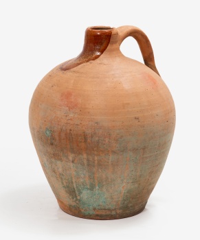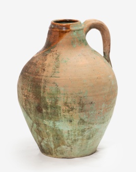 Conjunto de botijo y botijo de colgar en cerámica esmaltada verde.