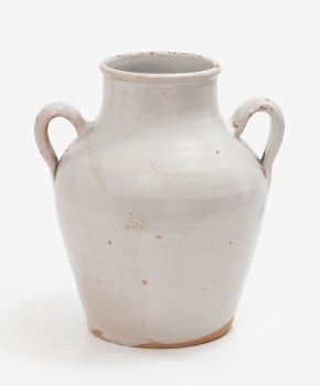 Jarrón en cerámica esmaltada en blanco y argizaiola en madera tallada representando sol.