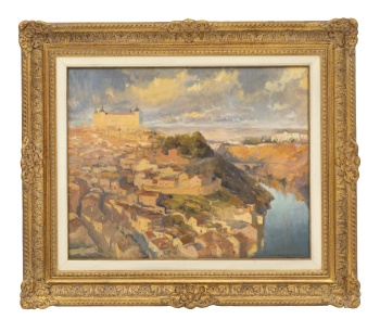 (S. XX) "Vista de Taull. Lérida" Óleo / Lienzo 46,5 x 55 cm. ; 89 x 77 cm. (con marco) Al dorso titulado